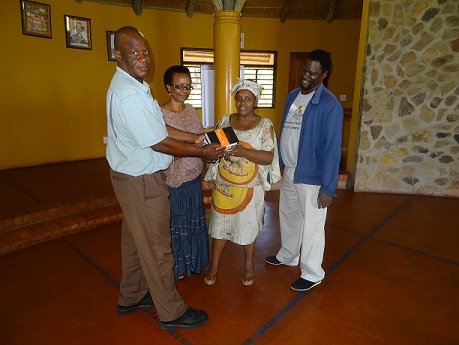 Pictured above is Mr Masenyani Baloyi (far left) handing over some Swati Bibles.